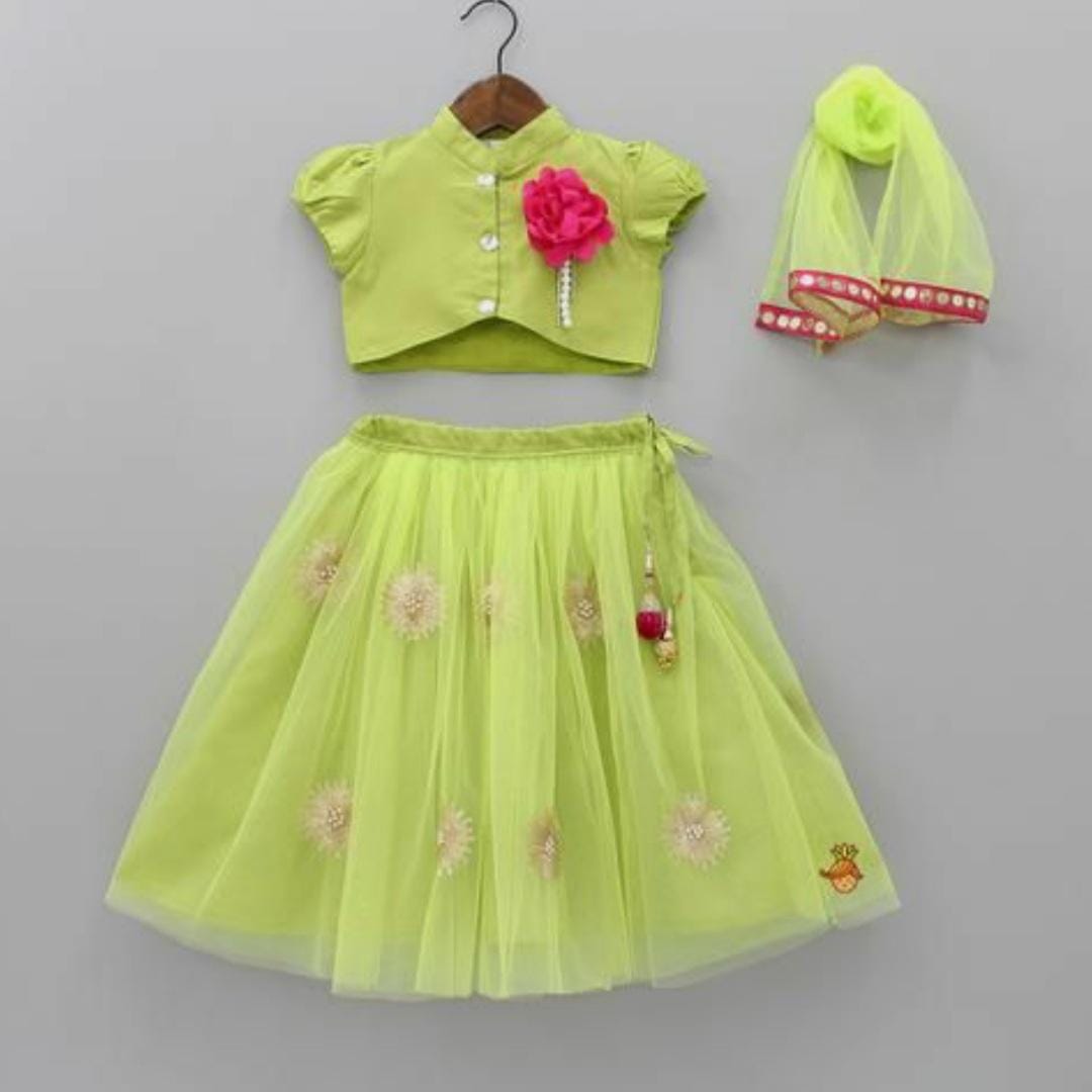 This best girl lehanga choli made from Net Satin and Cotton lining with laces and stone work. This girls lehenga choli set are quite comfortable to wear and skin friendly as well. It will give your rockstar fabulous look.