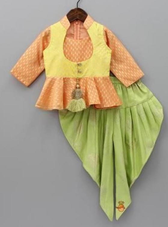 This multi dhoti kurta set made from banarsi fabric. This girls dhoti kurta set are quite comfortable to wear and skin friendly as well. It will give your rockstar fabulous look.