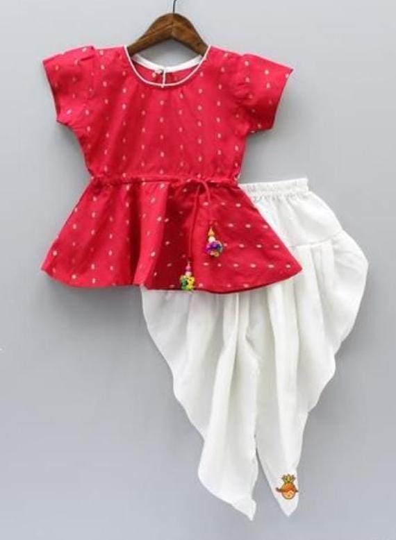This multi dhoti kurta set made from banarsi fabric. This girls dhoti kurta set are quite comfortable to wear and skin friendly as well. It will give your rockstar fabulous look.