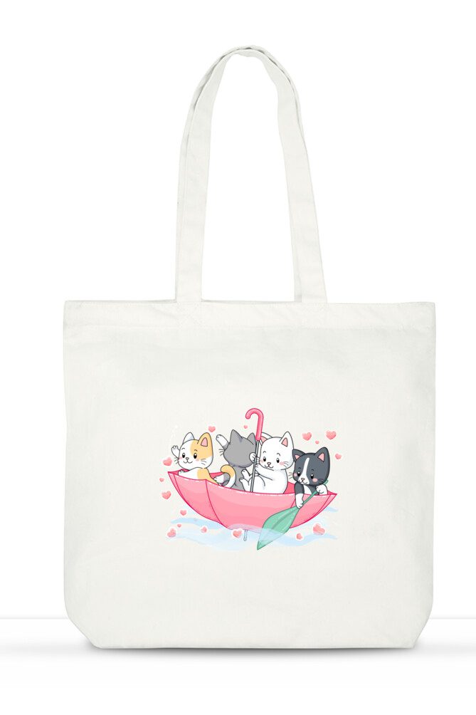 Multipurpose Laptop Tote Bag printed Cats and Umbrella - Fashion Greet