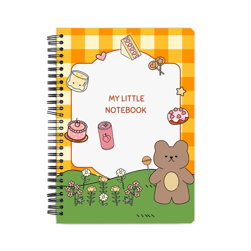 - The notebook features a wire-O binding with a metal spiral.