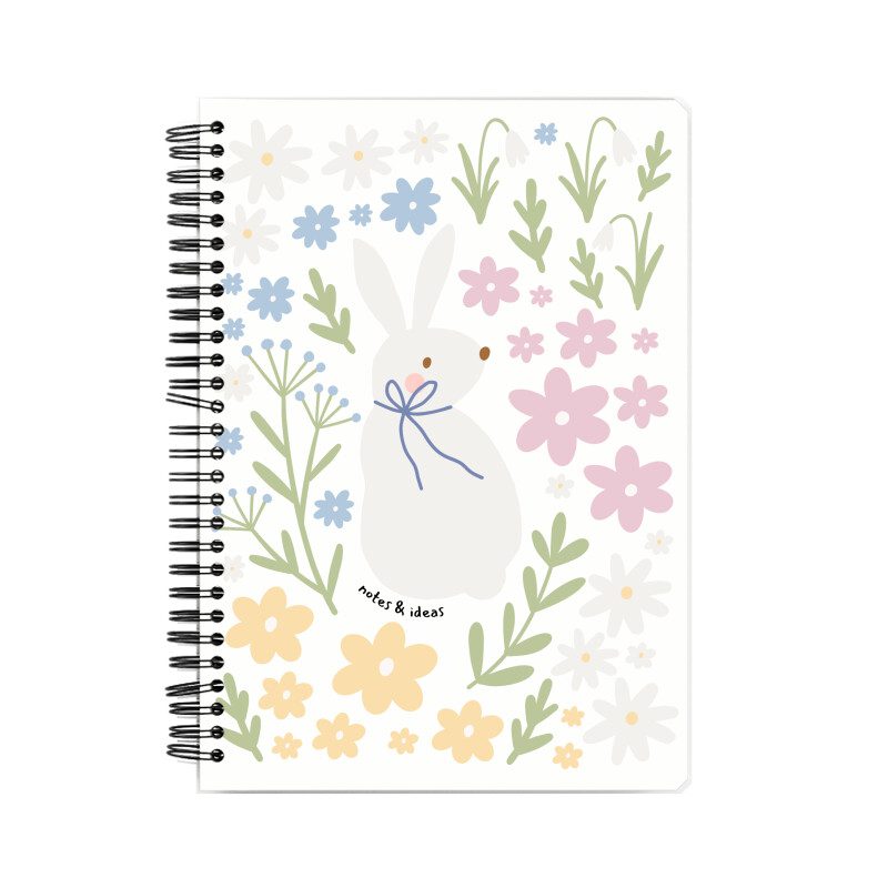 - The notebook features a Wiro binding with a metal spiral.
