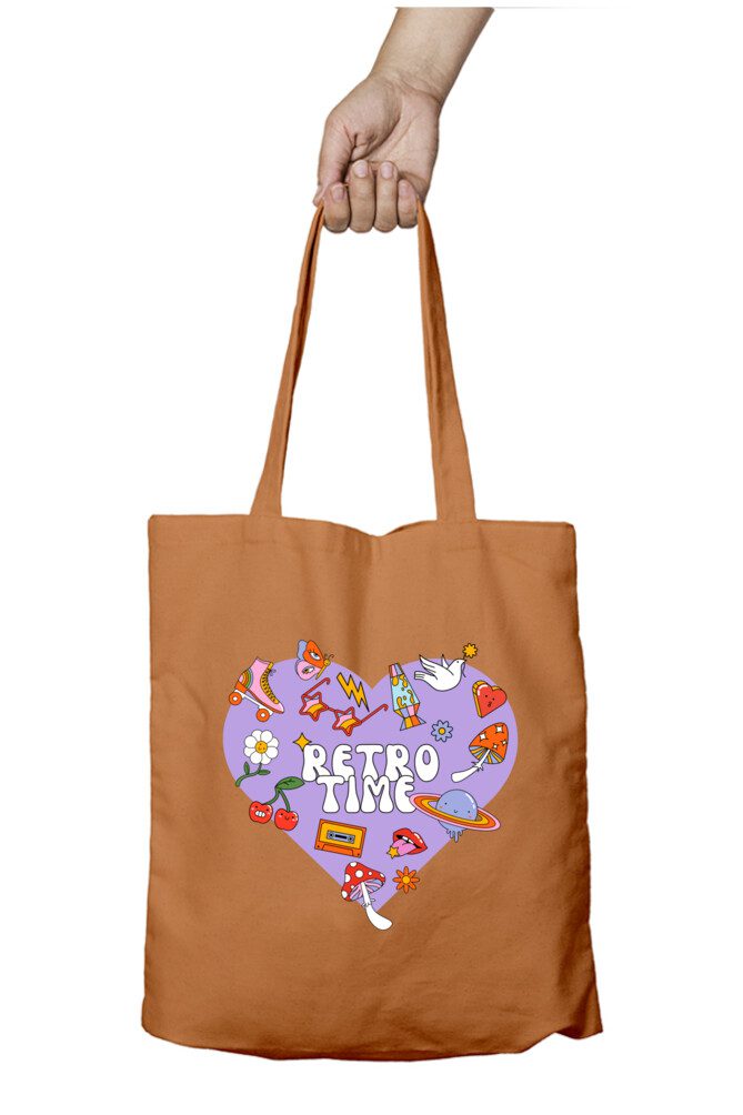 Tote Bag with Zipper – Retro Time with Hearty Design